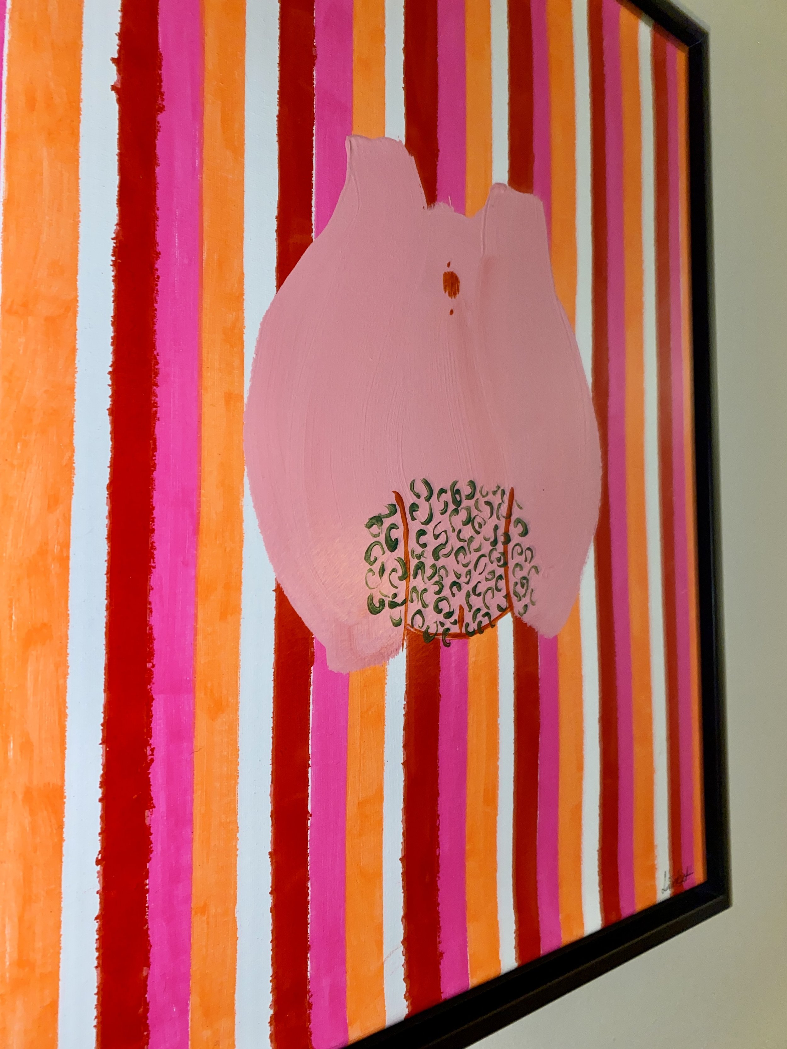 In this composition, abstract forms evoke the rhythmic dance of menstrual flow, which are often in challenge with societal norms - despite menstruation being the norm across more than 50% of the global population. The brushstrokes are deliberate and confident, mirroring the self-assuredness needed to confront and overcome the stigmas associated with menstruation.